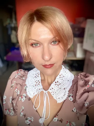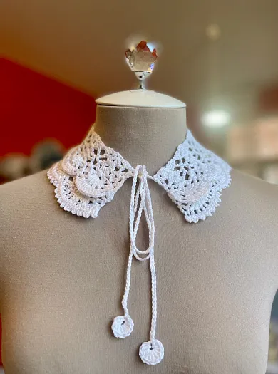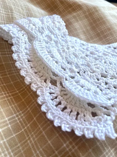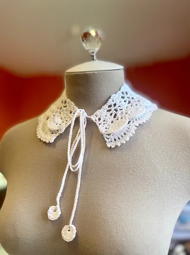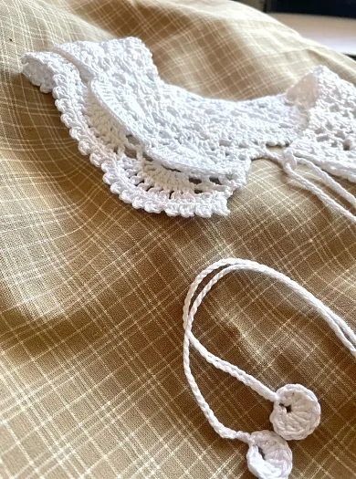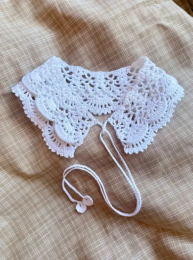 Хлопковый воротничок, связанный вручную крючком. Длина по горловине 44 см, ширина вязания 8 см