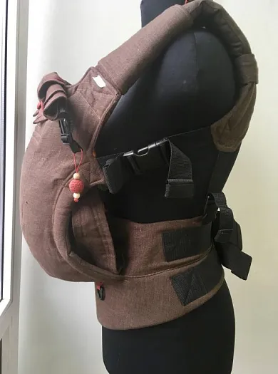 - Во избежание кардинального нарушения позиции ребенка в рюкзачке не ослабляйте лямки и пояс слишком сильно.