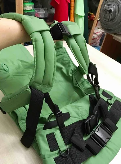 - Следите, чтобы руки ребёнка находились вне прямого контакта с липучками, стропами и фастексами, во избежание случайного натирания кожи.