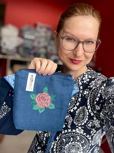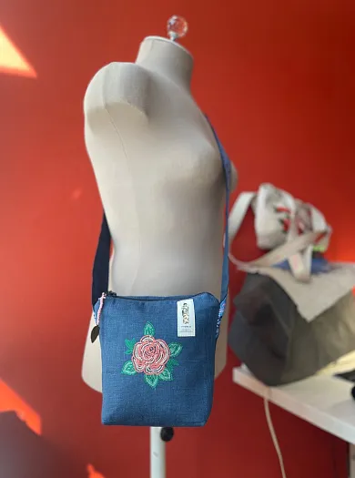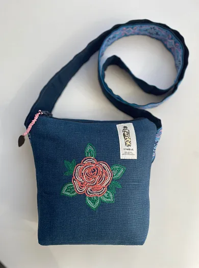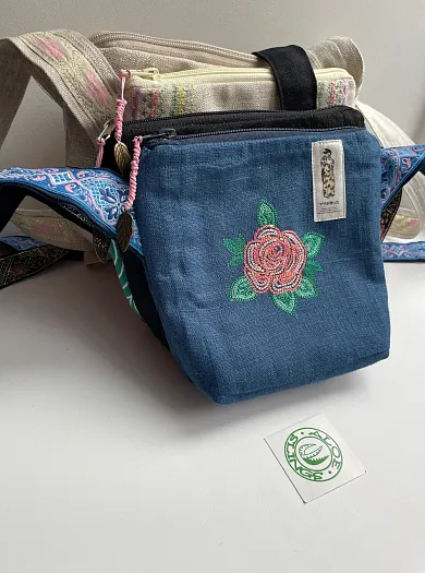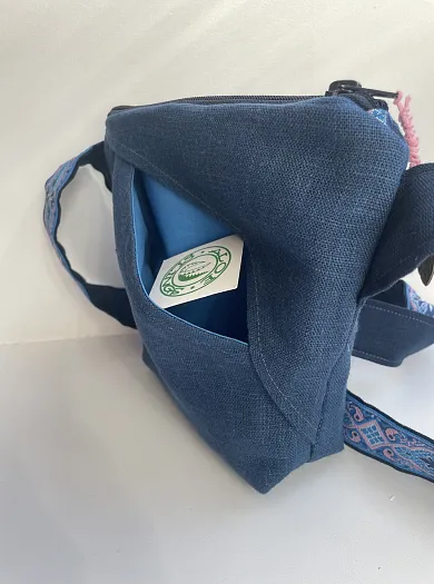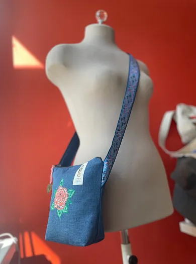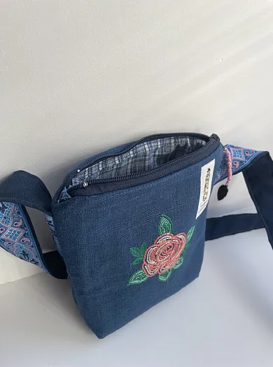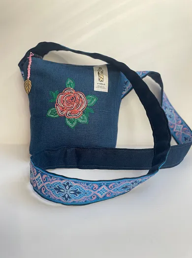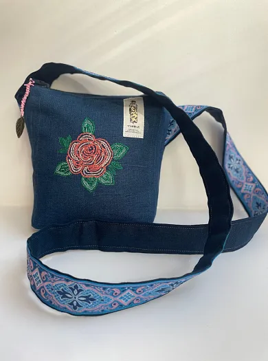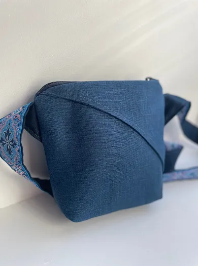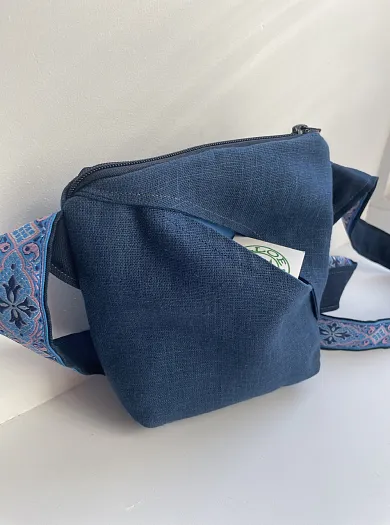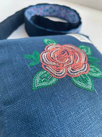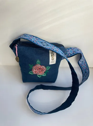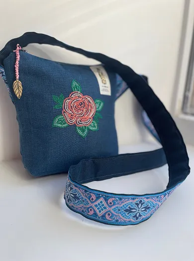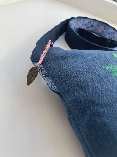 Текстильная сумка с вышивкой на льне, с дополнительным карманом на другой стороне.