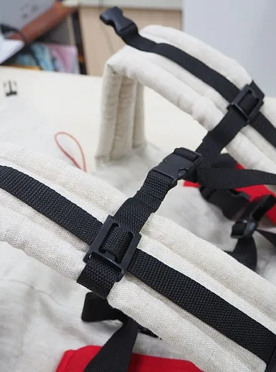 - Во избежание кардинального нарушения позиции ребенка в рюкзачке не ослабляйте лямки и пояс слишком сильно.