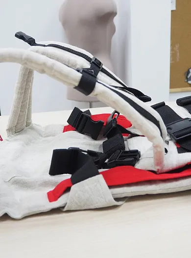 - Следите, чтобы руки ребёнка находились вне прямого контакта с липучками, стропами и фастексами, во избежание случайного натирания кожи.