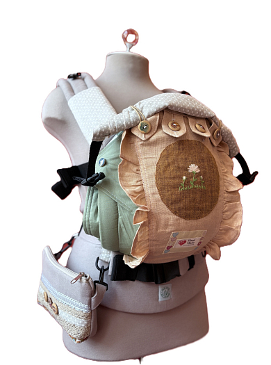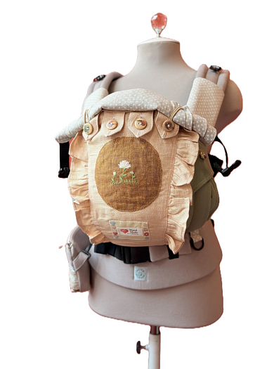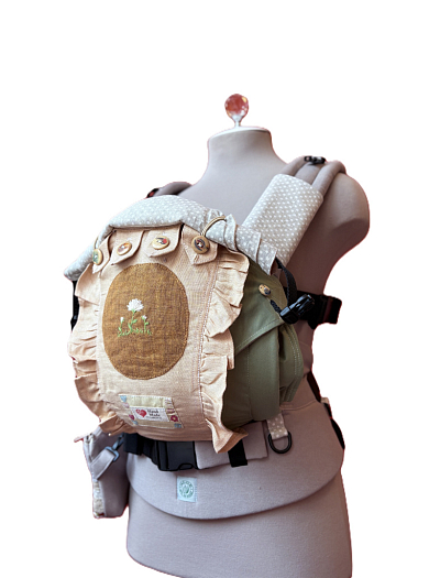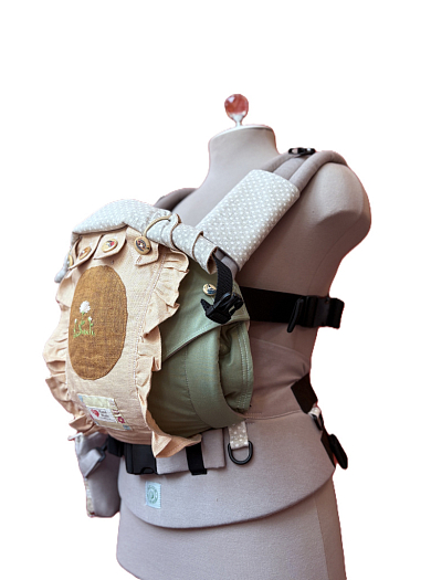 Рюкзак адаптирован для ношения несидящих детей- можно застегнуть лямки по поясу, без бокового крепления.