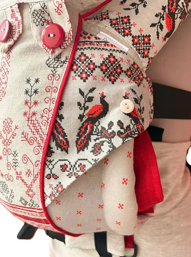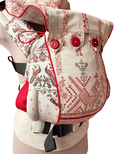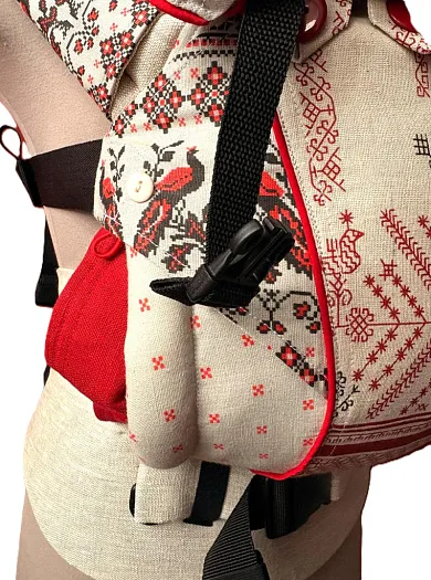 • Плотный пояс выкроен "улыбкой", пояс "анатомический" для правильной посадки на бёдра и живот родителя.