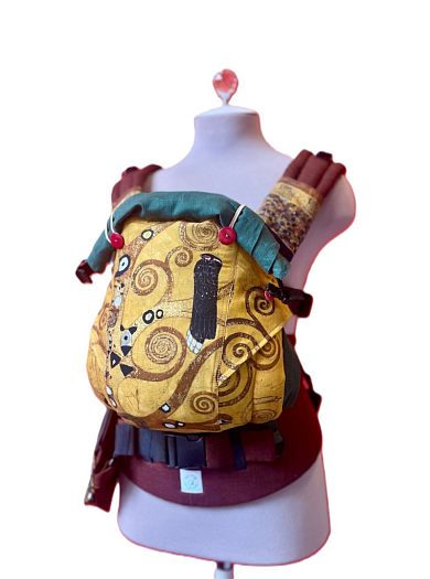 Специально разработанная выкройка позволяет разместить малыша, сохраняя скругленную линию спинки, не перетягивая по одной линии позвоночник. Особое значение в этом имеет трапецевидные вставки на спинке для расширения площади натяжения от боковой стропы(в размерах кроха, кроха плюс и малыш) (разработка Aloe_slings).