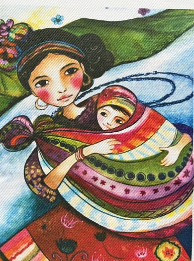 Рюкзак для переноски ребенка с пэчворком с этой картинкой по центру. Оттенки для рюкзака я подберу подходящие под эту картинку, неяркие.