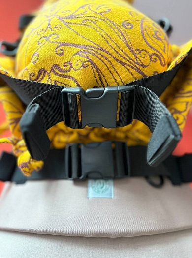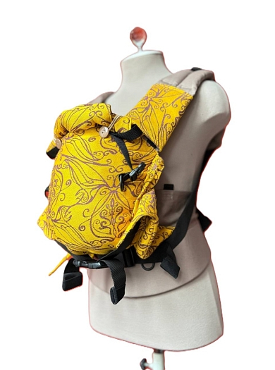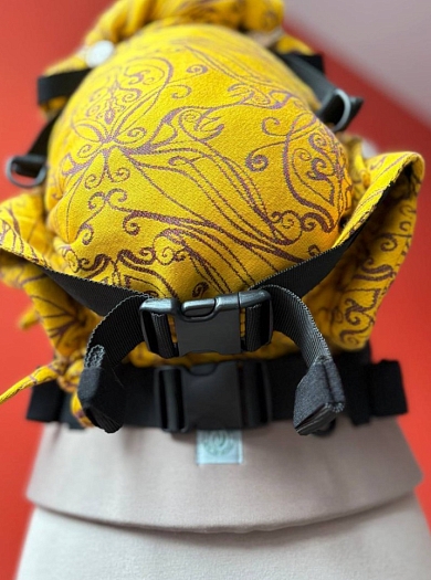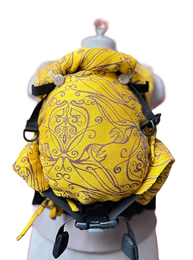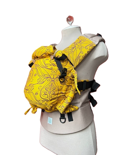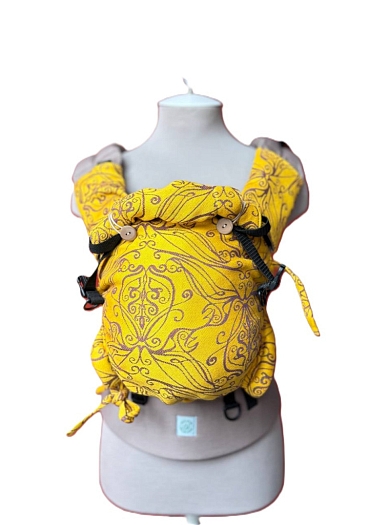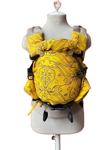 Эргорюкзак Ньюборн Алое Солнце эльфов с хлопком "Какао" и слингом-шарфом Yaro Elvish Duo Yellow Purple Tencel Seacell