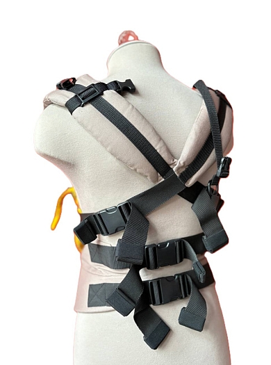 - Следите, чтобы руки ребёнка находились вне прямого контакта с липучками, стропами и фастексами, во избежание случайного натирания кожи.