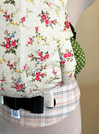 • Плотный пояс выкроен "улыбкой", пояс "анатомический" для правильной посадки на бёдра и живот родителя.