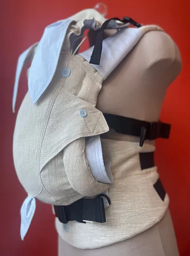 - Во избежание кардинального нарушения позиции ребенка в рюкзачке не ослабляйте лямки и пояс слишком сильно.