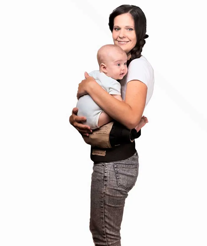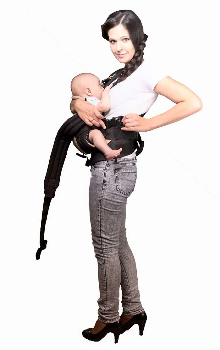 Положение ребенка «На бедре» в Aloe-комби с универсальными лямками: