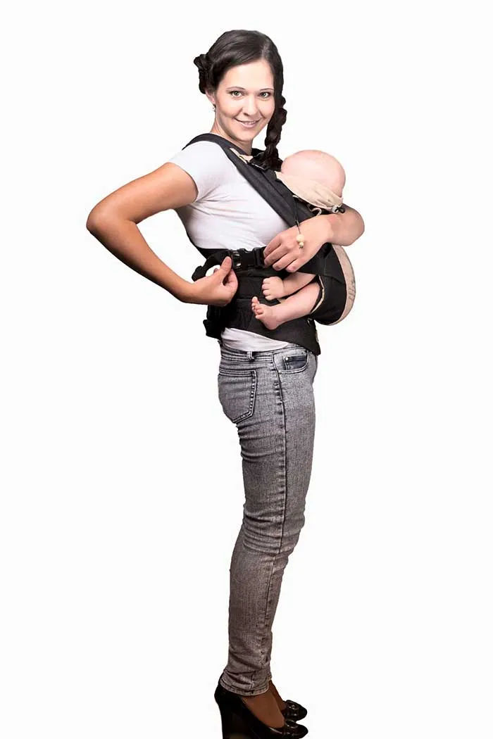 Аккуратно застегните фастекс до щелчка. Следите, чтобы ручки малыша были подальше от фастексов в момент застегивания.